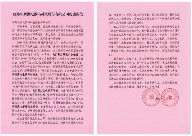Recently, the Zhengzhou Municipal People’s Government officially issued the “Notice on Commending Enterprises with Outstanding Performance in Special Work for High-Quality Development of the Real Economy in Zhengzhou in 2025,” publicly commending enterprises that have deeply engaged in and achieved remarkable results in the field of the real economy across the city. Zhengzhou New Century Digital Technology Co., Ltd. (hereinafter referred to as “Zhengzhou New Century”) was selected for the list due to its innovative breakthroughs in the high-end equipment manufacturing sector, solid and steady operational results, and positive contributions to local economic development. The company secured this municipal-level honor through practical efforts and persistence, demonstrating the responsibility and commitment of real economy enterprises in the new era.